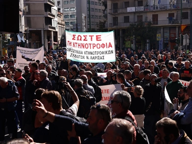 Σε εξέλιξη βρίσκεται αυτή την ώρα η πανελλαδική κινητοποίηση αγροτών και κτηνοτρόφων στην Αθήνα. Οι διαδηλωτές, που συγκεντρώθηκαν από νωρίς το πρωί στην πλατεία Καραϊσκάκη στο Μεταξουργείο, πραγματοποίησαν πορεία διαμαρτυρίας προς το υπουργείο Αγροτικής Ανάπτυξης και Τροφίμων.