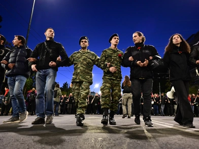 Μπροστά από τους φοιτητικούς συλλόγους, μάλιστα, βρέθηκαν και στρατιώτες των Ενόπλων Δυνάμεων, σε μία καθιερωμένη κίνηση στις πορείες του Πολυτεχνείου.