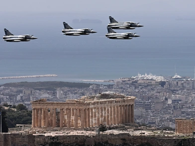 Το Orange Press Agency, κατέγραψε τις σκηνές στο κέντρο της Αθήνας με τα αεροσκάφη να «σκίζουν» τους αιθέρες.