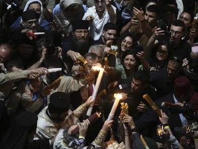 Νωρίτερα πραγματοποιήθηκε η τελετή αφής του Αγίου Φωτός και ο διαμοιρασμός του στους πιστούς που βρέθηκαν στον Ιερό Ναό της Αναστάσεως στα Ιεροσόλυμα.