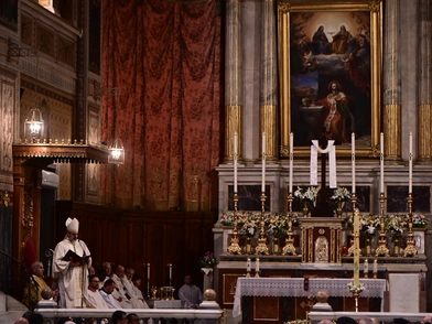 Σε πένθιμο κλίμα, αλλά και με τη δέουσα λαμπρότητα, τελείται στον Ιερό Ναό Αγίου Διονυσίου Καθολικών (Πανεπιστημίου 24) στην Αθήνα η Θεία Λειτουργία υπέρ αναπαύσεως του Πάπα Φραγκίσκου.