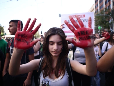 Στο πλαίσιο της κινητοποίησης μαθητές προχώρησαν σε ένα συμβολικό δρώμενο. Φτάνοντας έξω από το αμερικάνικο Προξενείο έβαψαν τα χέρια τους με κόκκινη μπογιά, συμβολίζοντας το αίμα των αμάχων στη Λωρίδα της Γάζας και άφησαν αποτυπώματα στο κατεβασμένο ρόλο του εμπορικού κέντρου.