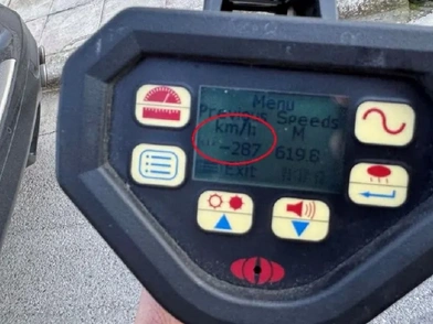 Στο σταθμό διοδίων στον συγκεκριμένο αυτοκινητόδρομο, τα δύο οχήματα να κινούνται με ταχύτητα 287 και 254 χιλιόμετρα την ώρα, σύμφωνα με τη συσκευή μέτρησης. ταχύτητας.
