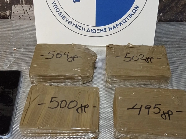 Σε έλεγχο εντοπίστηκαν εντός του οχήματός του, σε ειδικά διαμορφωμένη κρύπτη και κατασχέθηκαν τέσσερις αυτοσχέδιες συσκευασίες, οι οποίες περιείχαν ηρωίνη, συνολικού βάρους 2 κιλών.