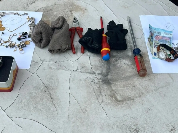 Κατά τον σωματικό έλεγχο εντός της οικίας, βρέθηκαν στην κατοχή τους κοσμήματα που μόλις είχαν αφαιρέσει, καθώς και διαρρηκτικά εργαλεία.