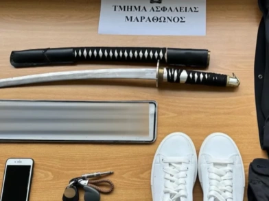 Κατά τη διάρκεια ελέγχου στο, χώρο, εντοπίστηκαν το πιστόλι που χρησιμοποιούσε στις ληστείες, τα ρούχα με τα οποία είχε ταυτοποιηθεί, αλλά και ένα σπαθί κατάνα τύπου wakizashi.