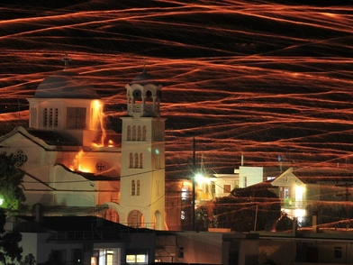 Σύμφωνα με την παράδοση, η συνήθεια αυτή ξεκίνησε επί Τουρκοκρατίας, όταν οι χριστιανοί κάτοικοι ήθελαν να δείξουν στους Τούρκους πώς γιορτάζουν οι ορθόδοξοι την Ανάσταση. Εκείνη την ημέρα, ο νυχτερινός ουρανός πάνω από το χωριό μοιάζει να παίρνει φωτιά.
