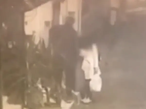 Στα πλάνα, που καταγράφηκαν από κάμερα ασφαλείας στην απέναντι πολυκατοικία, το ζευγάρι φαίνεται να φτάνει στο κατάλυμα.
