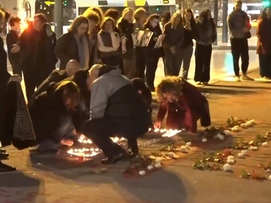 Στο Σύνταγμα, έβαλαν λευκά τριαντάφυλλα στο σημείο όπου είχαν γραφτεί τα ονόματα των 57 θυμάτων ενώ άναψαν κεριά σχηματίζοντας τον αριθμό «57».