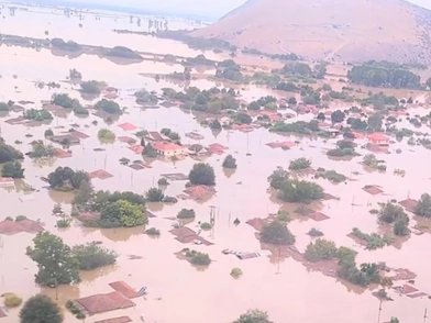 Σε βίντεο που δημοσιεύτηκε στα κοινωνικά δίκτυα, φαίνεται η στάθμη του νερού να έχει καλύψει τα σπίτια, από τα οποία διακρίνεται μόνο η στέγη τους.