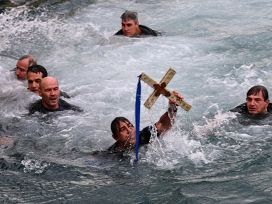 Πλήθος κόσμου συγκεντρώθηκε στο λιμάνι του Πειραιά και στον Σαρωνικό, ενώ πολλοί βούτηξαν στα παγωμένα νερά για να πιάσουν τον σταυρό, ακολουθώντας το έθιμο που συμβολίζει την καθαρότητα και την ευλογία για τη νέα χρονιά.