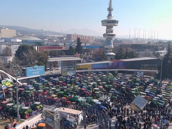 Έξω από τη Διεθνή Έκθεση Θεσσαλονίκης, όπου διοργανώνεται η 30ή Διεθνής Έκθεση Αgrotica, βρίσκονται παρατεταγμένα εκατοντάδες τρακτέρ και αγρότες που διαμαρτύρονται για το αυξημένο κόστος παραγωγής και για την ακρίβεια στην ηλεκτρική ενέργεια και το πετρέλαιο.