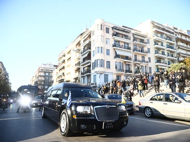 Αστυνομικοί σε περιπολικά, μηχανές και κλούβες των ΜΑΤ προηγήθηκαν για να ανοίξουν τον δρόμο προκειμένου να οδηγηθεί ο συνάδελφος στην τελευταία του κατοικία, στα κοιμητήρια Αναστάσεως του Κυρίου.