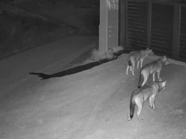 Κάμερα σπιτιού στο Πανόραμα της Θεσσαλονίκης κατέγραψε, έξω από την εξώπορτα, τέσσερις λύκους.