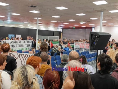 Ομάδα διαδηλωτών πραγματοποίησε παρέμβαση υπέρ της Παλαιστίνης όταν εισέβαλε το απόγευμα του Σαββάτου (10/5) στον χώρο που φιλοξενεί εκδήλωση για την εβραϊκή λογοτεχνία στη Διεθνή Έκθεση Βιβλίου Θεσσαλονίκης.