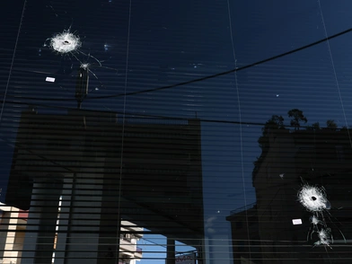 Υπάλληλοι της εταιρείας όταν πήγαν για δουλειά αντίκρυσαν σπασμένες τζαμαρίες, προθήκες κατεστραμμένες από τους πυροβολισμούς και αυτοκίνητα με τρύπες στο αμάξωμά τους.
