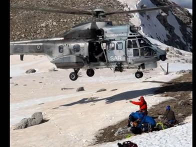 Εκεί έσπευσε κλιμάκιο της ΕΜΑΚ για τις πρώτες βοήθειες. Λόγω του χιονισμένου και δύσβατου αναγλύφου, κλήθηκε ελικόπτερο, το οποίο προσγειώθηκε με δεξιοτεχνία στην απότομη πλαγιά, παραλαμβάνοντας τον ορειβάτη και ολοκληρώνοντας με επιτυχία τη δραματική αεροδιακομιδή.