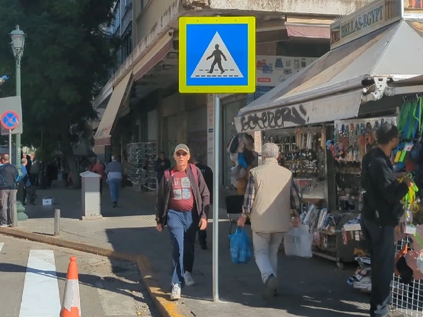 Επίσης, τοποθετήθηκαν 18 πληροφοριακές πινακίδες διάβασης πεζών «Π-21» μεσαίου μεγέθους, με προσθήκη κιτρινοπράσινης φθορίζουσας αντανακλαστικής ταινίας περιμετρικά, υπερ-υψηλής ανακλαστικότητας (τύπου ΙΙΙ) για την ασφαλή διάβαση πεζών, κατά μήκος της οδού Αθηνάς από τη συμβολή της με την Ερμού μέχρι και την Ομόνοια.
