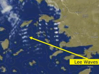 Όπως αναφέρει ο Θοδωρής Κολυδάς, «στη μετεωρολογία, τα Lee Waves είναι ατμοσφαιρικά στάσιμα κύματα. Η πιο κοινή μορφή είναι τα ορογραφικά νέφη, τα οποία είναι κύματα εσωτερικής βαρύτητας της ατμόσφαιρας.