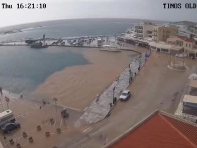 Τη στιγμή που η θάλασσα της Τήνου γίνεται από μπλε καφέ εξαιτίας της κακοκαιρίας κατέγραψε ένα εντυπωσιακό time-lapse χάρη σε κάμερα που είναι εγκατεστημένη στο λιμάνι του νησιού.