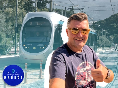 Η βόλτα του Δημήτρη Μάρκου ξεκίνησε από τη Νέα Σμύρνη, αφού προηγουμένως αγόρασε 1 εισιτήριο για το Τραμ με μόλις 1,20 ευρώ και ισχύ 1,5 ώρα!