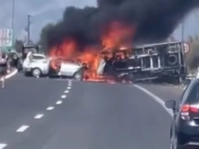 Φορτηγό συγκρούστηκε με δύο Ι.Χ. οχήματα, προκαλώντας πυρκαγιά, η οποία είχε ως τραγικό αποτέλεσμα να απανθρακωθούν τρεις άνθρωποι.