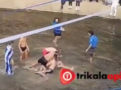 Όπως αναφέρει το trikalaopinion, αρχικά τον σταυρό έπιασε ένας νεαρός, όμως έπεσαν πάνω του άλλοι για να τον πάρουν με αποτέλεσμα να υπάρξει ένταση.