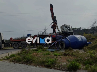 Συγκεκριμένα, σύμφωνα με το evima.gr, το όχημα βαρέου τύπου που μετέφερε μπετόν, εξετράπη της πορείας του και ανατράπηκε στο 85 χλμ της ΕΟ Χαλκίδος- Αιδηψού, λίγα μέτρα πριν τη διασταύρωση προς Δασικό Χωριό.