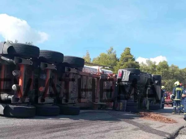 Όπως αναφέρει το eviathema, το τροχαίο σημειώθηκε στον δρόμο από Ψαχνά στο ρεύμα προς Βόρεια Εύβοια, λίγο πριν τις 15:00, όταν ο οδηγός του φορτηγού έχασε τον έλεγχο σε απότομη στροφή και ανετράπη.
