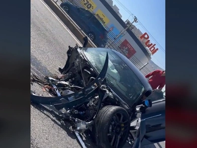 Σοκάρει το τροχαίο με μία Maserati στον Κηφισό, καθώς το μπροστινό μέρος του οχήματος διαλύθηκε κανονικά.