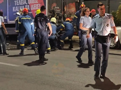 Οι εικόνες που εκτυλίχθηκαν στη συνέχεια ήταν εξαιρετικά «σκληρές» καθώς χρειάστηκε μεγάλη προσπάθεια για να αποκολλήσουν οι πυροσβέστες τη μηχανή από το πίσω μέρος του φορτηγού -στο οποίο σχηματίστηκε μια τρύπα- και να απομακρύνουν τον αναβάτη.