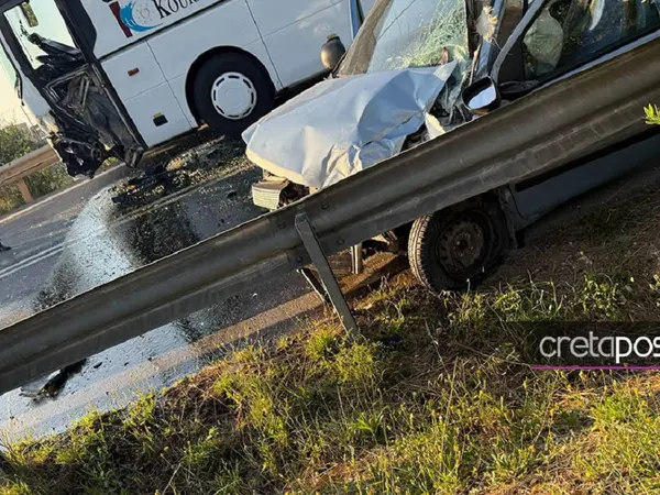 Σύμφωνα με το cretapost.gr, όλα συνέβησαν χθες λίγο μετά τις 19:00 στην παλαιά εθνική οδό στο ύψος των Γουβών, όταν ένα τουριστικό λεωφορείο συγκρούστηκε με αυτοκίνητο.
