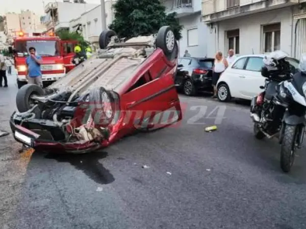 Τότε, προσέκρουσε σε τρία παρκαρισμένα Ι.Χ. και στη συνέχεια, αναποδογύρισε στη μέση του δρόμου με αποτέλεσμα να επικρατήσει πανικός στην περιοχή της Πάτρας.