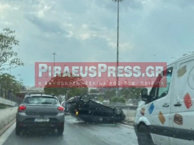 Ένα επεισοδιακό τροχαίο σημειώθηκε λίγο νωρίτερα στον Πειραιά, όταν αυτοκίνητο που βρέθηκε σε καραμπόλα αναποδογύρισε και έμεινε με την οροφή στο οδόστρωμα.