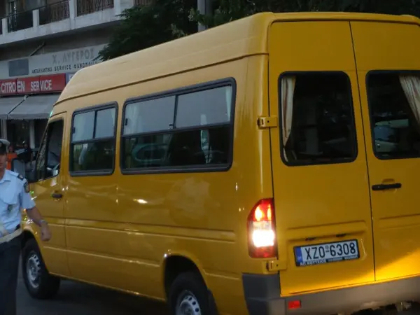Μέσα στο σχολικό βρίσκονταν τέσσερις ανήλικοι μαθητές ιδιωτικού σχολείου και η συνοδός δασκάλα, οι οποίοι ευτυχώς δεν τραυματίστηκαν.