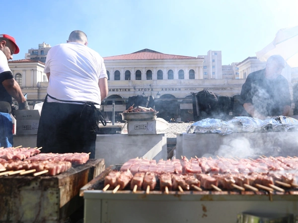 Ψητοπωλεία στο κέντρο της Αθήνας έχουν πιάσει δουλειά από νωρίς, για να μπορέσουν να ανταποκριθούν στη ζήτηση.