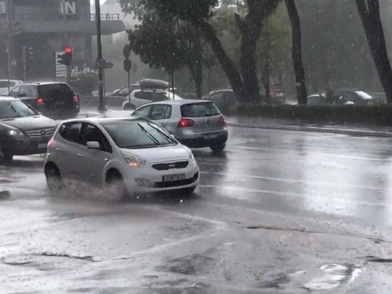 Η δυνατή βροχόπτωση δημιούργησε πρόσκαιρα προβλήματα στους δρόμους για πεζούς και οχήματα.