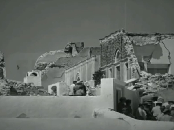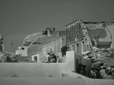 Κρατώντας το μπαστούνι της, μαυροφορεμένη με ένα μαντήλι στο κεφάλι, και έχοντας πλάι της τον γιο της, Γιώργο, θυμάται τον εκκωφαντικό κρότο και όσα ακολούθησαν, μετά τον σεισμό μεγέθους 7,5 βαθμών της κλίμακας Ρίχτερ, σύμφωνα με τις τότε καταγραφές, να ισοπεδώνουν τη Σαντορίνη και να αφήνουν πίσω τους 53 νεκρούς, εκατοντάδες τραυματίες και συντρίμμια.