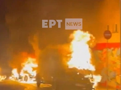 Το βίντεο της ΕΡΤ την ώρα που τα οχήματα φλέγονταν: