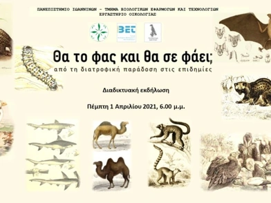Η επιστήμη της Εθνοβιολογίας μπορεί να βοηθήσει μαζί με τις επιστήμες της Επιδημιολογίας, της Ανοσολογίας και της Οικολογίας στη διερεύνηση των σύνθετων παραγόντων που οδηγούν σε νέες μολυσματικές ασθένειες και στην σχέση τους με τη διαχείριση και διατήρηση της βιοποικιλότητας; Δέκα φοιτητές του τμήματος Βιολογικών Εφαρμογών και Τεχνολογιών απαντούν στα παραπάνω ερωτήματα, στην εργασία με τίτλο «Θα το φας και θα σε φάει: από τη διατροφική παράδοση στις επιδημίες», που θα παρουσιαστεί σε διαδικτυακή εκδήλωση σήμερα Πέμπτη 1 Απριλίου.