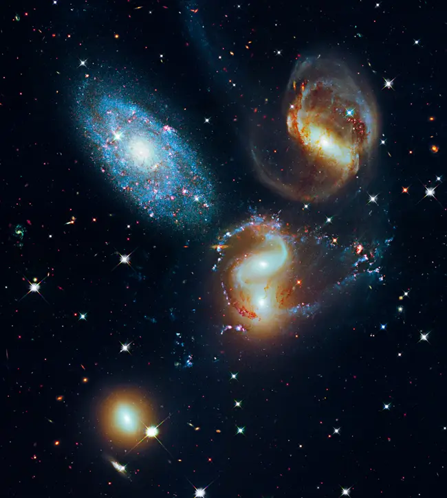 Με εξαίρεση τον NGC 7320c που εντοπίζεται στα 40 εκατομμύρια έτη φωτός μακριά από τη Γη, οι άλλοι τέσσερις εντοπίζονται 300 εκατομμύρια έτη φωτός μακριά και αλληλεπιδρούν βαρυτικά μεταξύ τους και σε βάθος χρόνου θα συγχωνευθούν σε έναν γιγάντιο γαλαξία. Στους NGC 7318A και NGC 7318Β η βαρυτική έλξη έχει δημιουργήσει περιόδους αστρογέννεσης που με εξάρσεις και υφέσεις εκτείνεται σε βάθος εκατοντάδων εκατομμυρίων ετών.