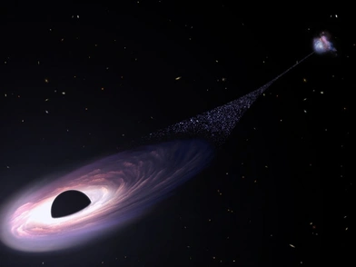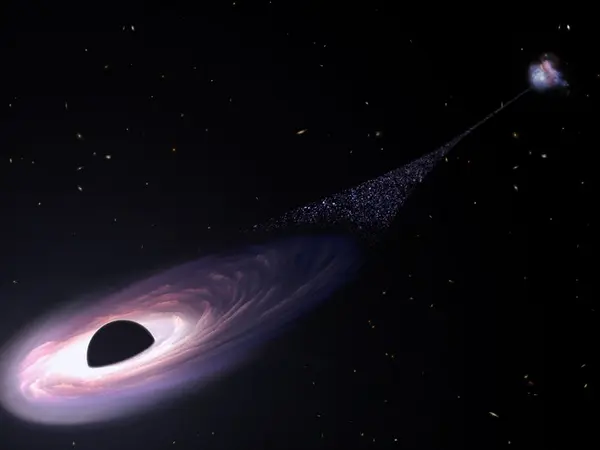 Αναλύοντας εικόνες από το διαστημικό τηλεσκόπιο Hubble της NASA οι ερευνητές ανακάλυψαν μια ασυνήθιστη, πολύ λεπτή, σχεδόν ευθεία λωρίδα νεαρών αστεριών. Έπειτα από παρατηρήσεις με το φασματόμετρο απεικόνισης χαμηλής ανάλυσης και το φασματογράφο εγγύς υπερύθρου του Αστεροσκοπείου Keck συμπέραναν ότι έβλεπαν το επακόλουθο μιας μαύρης τρύπας που πετούσε. Τα ευρήματα δημοσιεύονται στο περιοδικό «The Astrophysical Journal Letters».