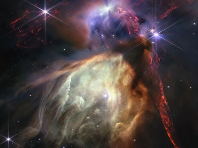 Το Rho Ophiuchi απέχει 390 έτη φωτός από τη Γη, με το James Webb να επιτρέπει μια εξαιρετικά λεπτομερή κοντινή λήψη, χωρίς αστέρια στο ενδιάμεσο.