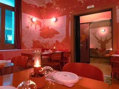 Μέσα σ’ ένα νεοκλασικό κτίριο του 1890, οι ροζ και πορτοκαλί τοίχοι, τα δύο δωμάτια που έχουν μετατραπεί σε cozy σάλες, η μπάρα, τα μεταλλικά τραπέζια και οι βελούδινες λεπτομέρειες συνθέτουν ένα μοναδικό σκηνικό με την υπογραφή του Studiomateriality, που ανέλαβε το interior design. Παράλληλα, όσο καλοκαιριάζει, οι επισκέπτες μπορούν να απολαύσουν το φαγητό τους και στον εξωτερικό χώρο, στον όμορφο πεζόδρομο που για λίγο σε κάνει να ξεχνάς ότι βρίσκεσαι στην Αθήνα.