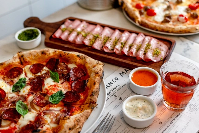 Οι φίλοι της slow-rising sourdough pizza δοκίμασαν μερικές από τις ήδη δημοφιλείς πίτσες του Franco Manca, όπως πίτσα με βιολογική ντομάτα, σκόρδο και φρέσκα μυρωδικά, πίτσα με ελαφρώς καπνιστό πικάντικο σαλάμι, ιταλική μοτσαρέλα, βιολογική ντομάτα, καραμελωμένα κόκκινα κρεμμύδια και φρέσκο βασιλικό αλλά και με σάλτσα τρούφας, μοτσαρέλα και ποικιλία μανιταριών συνοδεία Aperol Spritz.