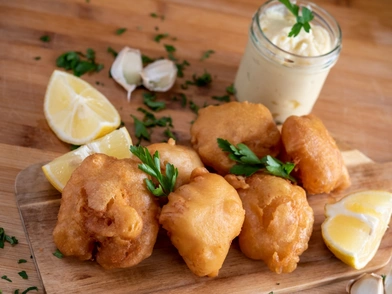 - Κόβουμε το μπακαλιάρο σε μικρές μερίδες, ίσες σε μέγεθος και πάχος ώστε να τηγανιστούν ομοιόμορφα.