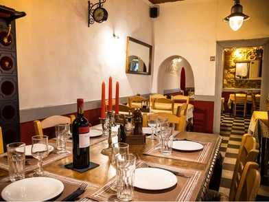 Στον ζεστό του χώρο, θα βρεις μια μεγάλη ποικιλία από ορεκτικά και μεζέδες και θα απολαύσεις το γλυκό χύμα κρασί και τη τσικουδιά. Η ατμόσφαιρα είναι άκρως ευχάριστη, με λαμπάκια, κάδρα και μουσικά όργανα να κρέμονται από τους τοίχους. Τον χειμώνα, η μικρή σάλα γεμίζει από κόσμο, δημιουργώντας την τέλεια συνθήκη για χριστουγεννιάτικες βραδιές.