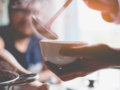 Ζεσταίνουμε τη σούπα και τη σερβίρουμε αμέσως σε μπολάκια προσθέτοντας μια κουταλιά sour cream και λίγο δεντρολίβανο.