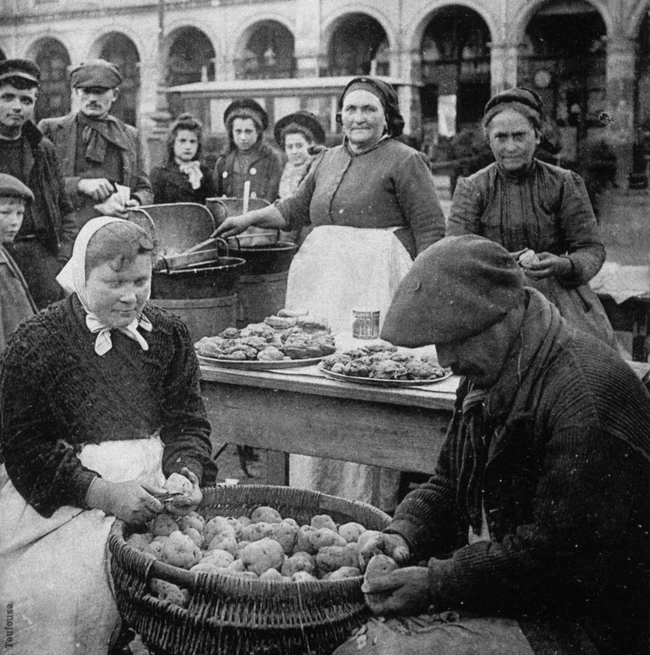 Όμως οι ιστορικοί υπάρχουν όμως (και) για να μας μπερδεύουν. Πολλοί λοιπόν είναι εκείνοι που υποστηρίζουν ότι: Οι Γάλλοι είχαν εκλαϊκεύσει το τηγάνισμα σε λίπος και μάλιστα πουλούσαν τηγανητές πατάτες σε καροτσάκια στους δρόμους που ονομάζονταν «Frittes» ήδη από τα τέλη του 1700. Οι πατάτες κόβονταν σε κάθε είδους σχήματα και τηγανίζονταν. Κι άντε να βρεις πού αρχίζει η αλήθεια και πού ο μύθος.