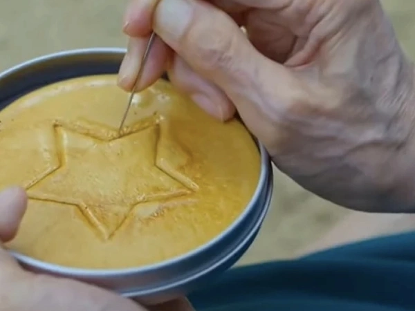 Στη συνέχεια, με μια μικρή βελόνα προσπαθούν να κόψουν το σχήμα που τους έτυχε, σε μια προσομοίωση του παιχνιδιού της σειράς. Μόνο που στη δική τους περίπτωση δεν υπάρχει το ίδιο άγχος, μην σπάσουν το σχήμα τους.